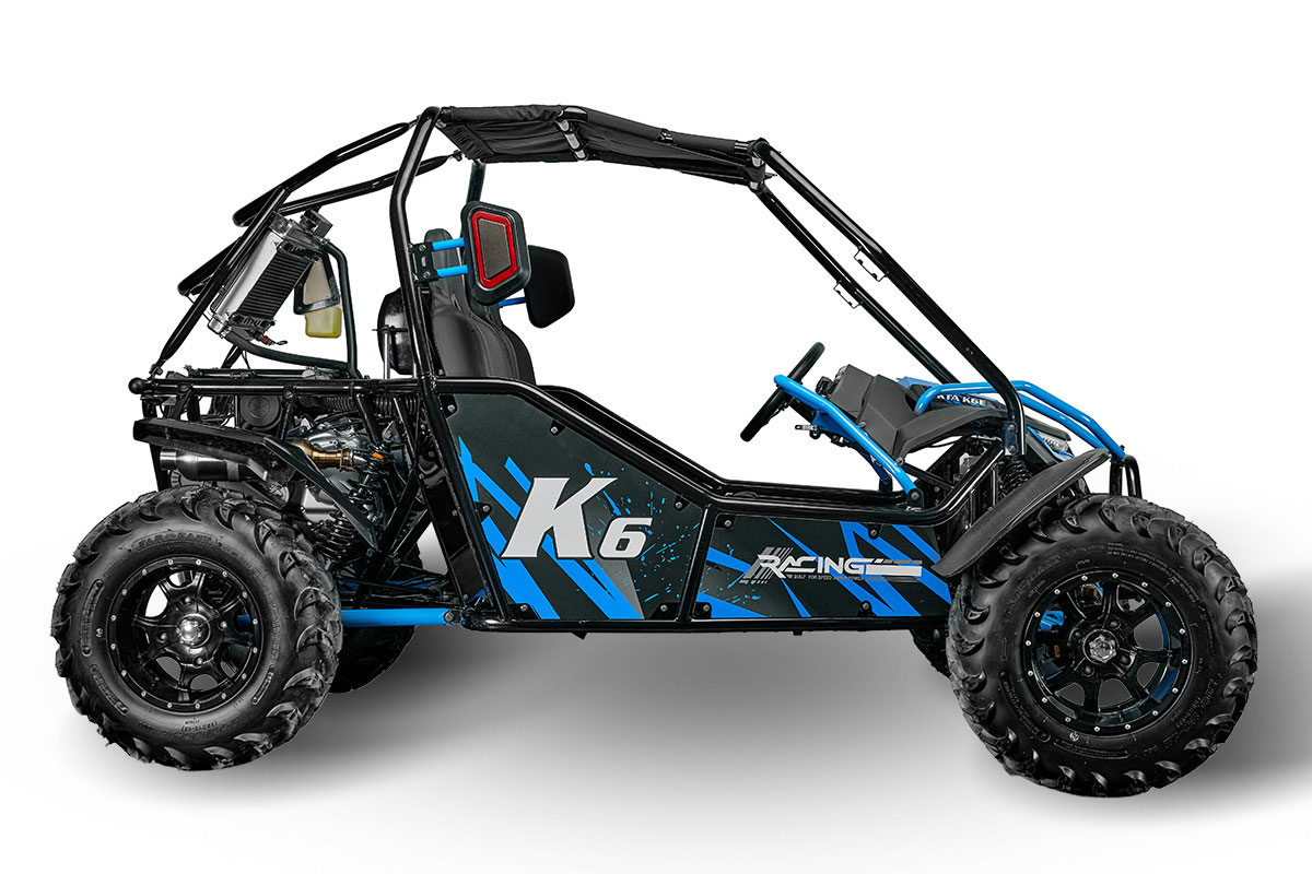 Багги К6 укомплектована привычным по багги КТА К7 и КТА К7Х двигателем 173MN с объемом 272 куб.см, но вариатор стоит нового образца с усиленным сцеплением. Новый вариатор куда быстрей раскручивается, обеспечивая резкий и уверенный старт.